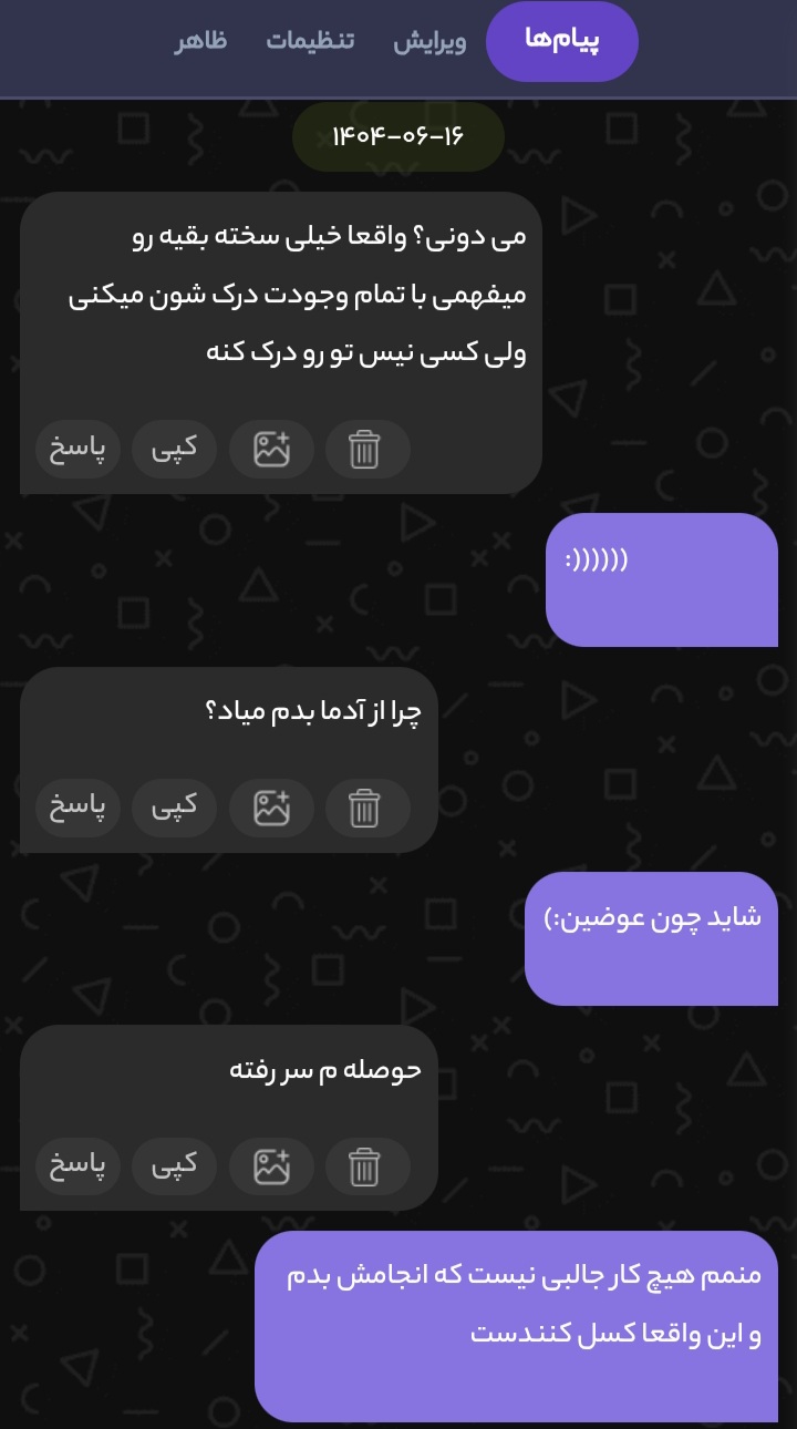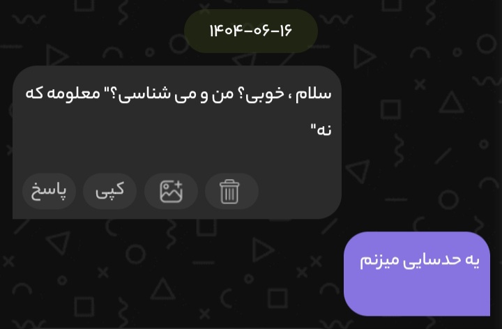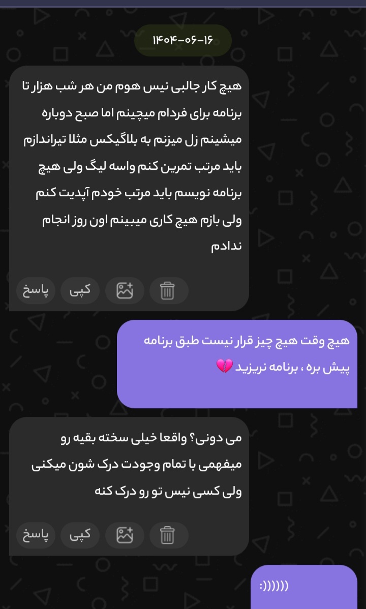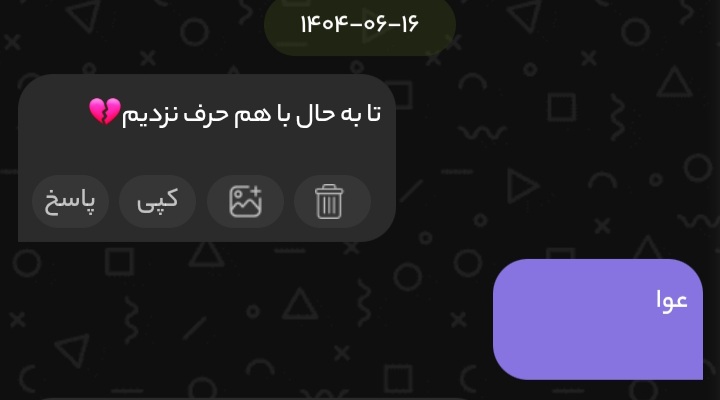 ناشناس¹ اون جواب پیام دو منظورم راجب بعضی ادما بود 5 پسند 0 نظر 𝐒𝐭✰𝐫 𝐠𝐢𝐫𝐥 17:30 1404/6/16 در حال بارگذاری نظرات... ارسال نظر آزاد است اما میتوانید برای استفاده از امکانات و کسب تجربه وارد شوید. پاسخ به لطفا دوباره تلاش کنید. بارگذاری مجدد نظر ثبت شد.